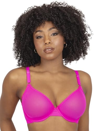 Smart & Sexy Dam Sheer Mesh Demi bygel BH, Elektrisk rosa (nät), 90F