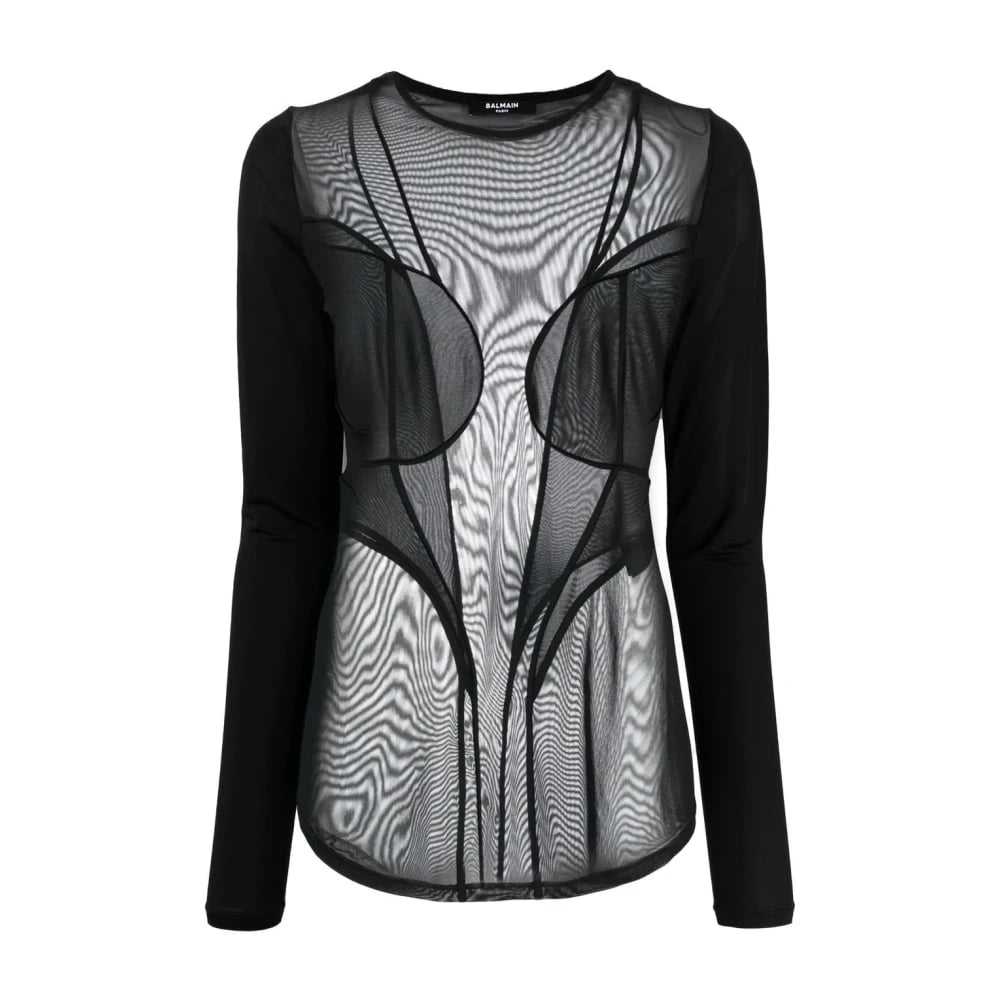Balmain, Toppar , Dam, S, Polyester, Mesh Mix Blus i Svart
