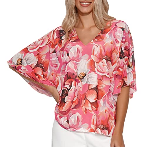 Makadamia luftig blus | kimono-ärmar | fashionabla mönster | lätt och luftigt material | sommar, elegant och lös stil | universellt snitt | V-ringad, Mesh 39, 40