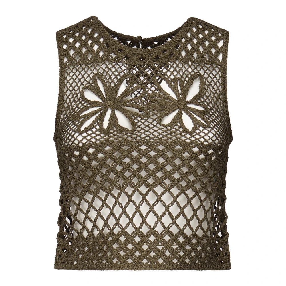 Pinko, Toppar , Dam, M, Militärgrön Virkad Mesh Tröja