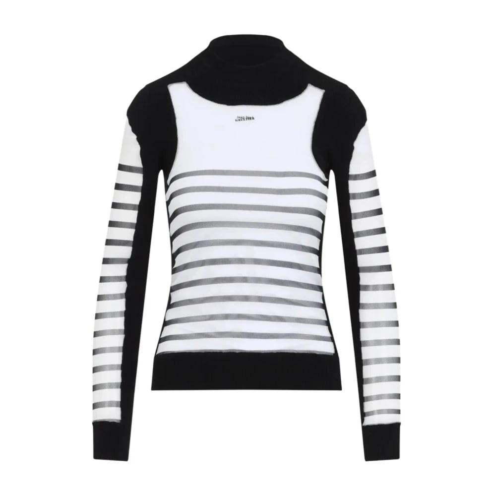 Jean Paul Gaultier, Stickade Tröjor , Dam, M, Polyester, Randig Mesh Stickad Tröja