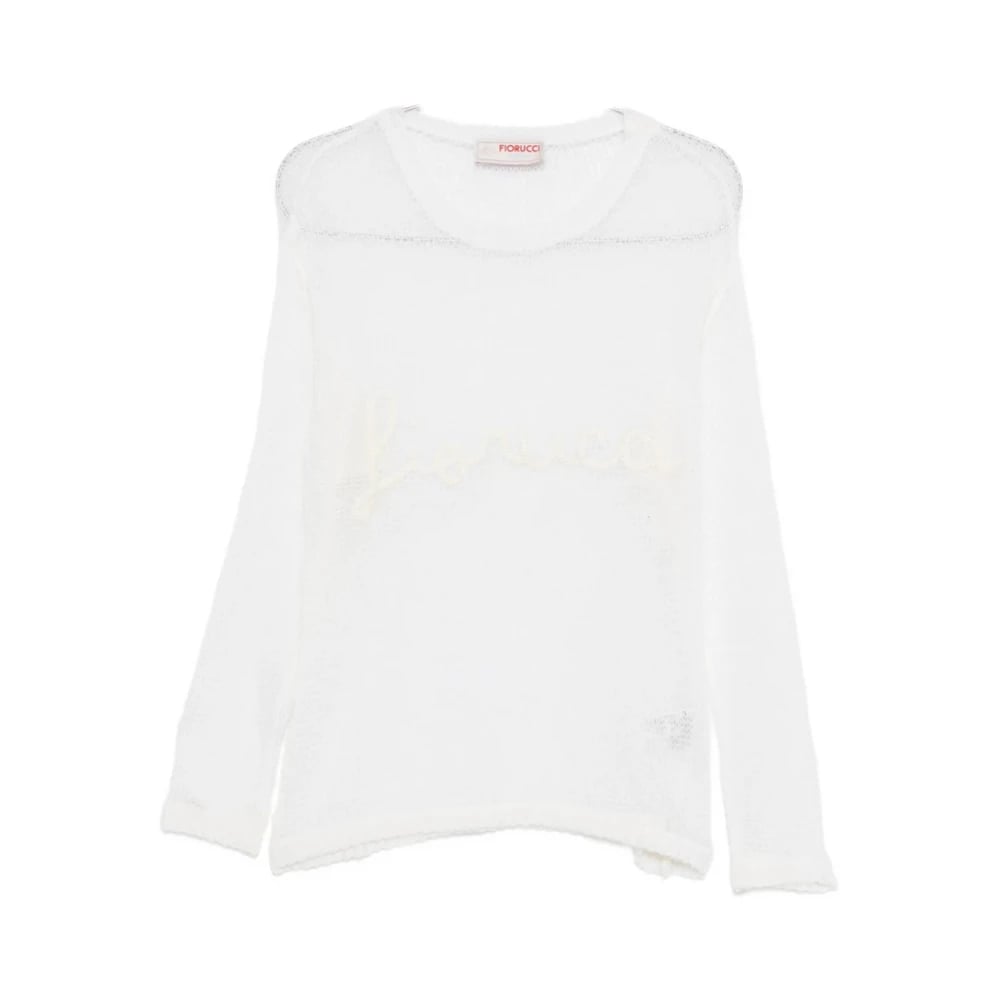 Fiorucci, Stickade Tröjor , Dam, XS, Vit Mesh Broderad Tröja Rund Hals