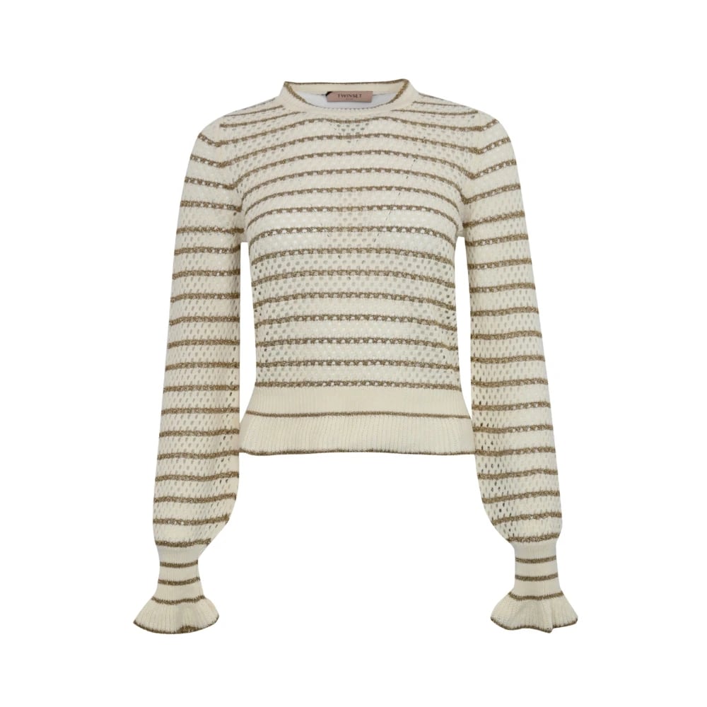 Twinset, Stickade Tröjor , Dam, XS, Bomull, Mesh Tröja med Lurexränder