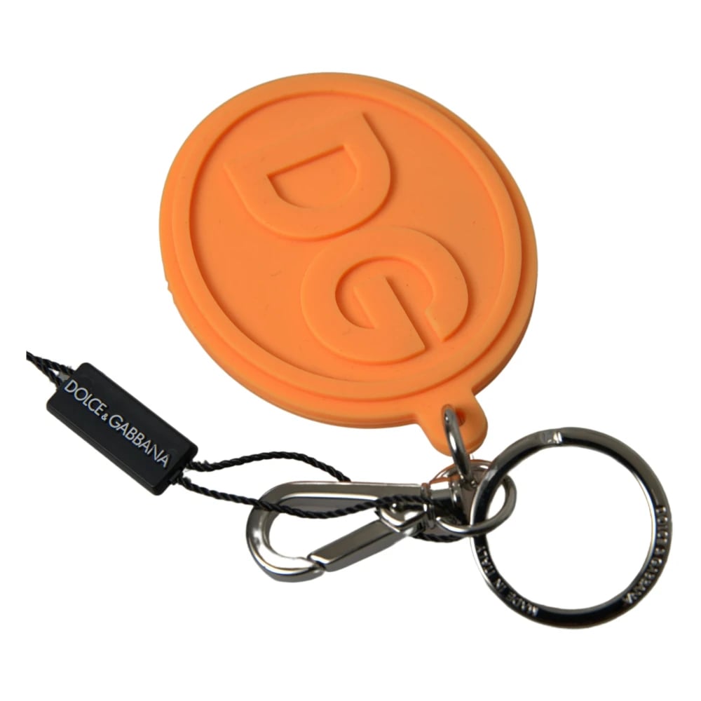 Dolce & Gabbana, Accessoarer , Dam, ONE Size, Guld Messing Metall Nyckelring med Orange Gummi DG Logo