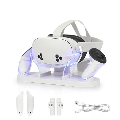 Laddningsdocka för Meta Quest 3S/Quest 3, VR-laddningsstationsställ kompatibel med Quest3S/Quest3 med LED/RGB-ljus, laddningsstation för Quest 3S/Quest3-headset och handkontroll (vit)