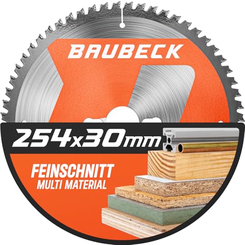 BAUBECK Sågblad 254 x 30 2,2 mm fint snitt i trä och aluminium, 80 tänder för kap- och bordscirkelsågar, som Metabo KGS 254 M, Bosch GTS 10 XC, PTS 10 kompatibel, cirkelsågblad 254, kapsågblad 254