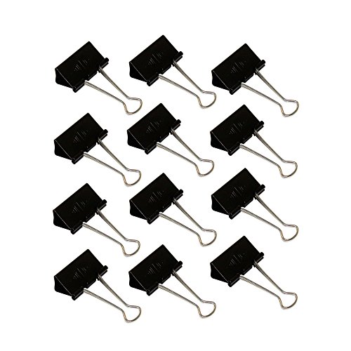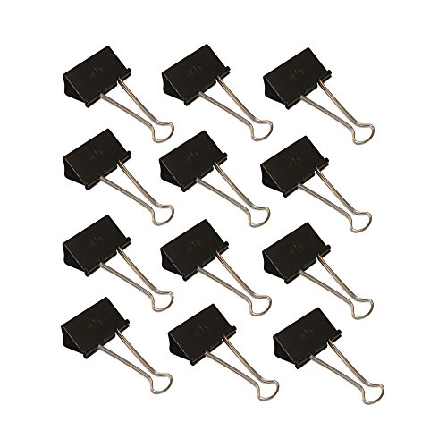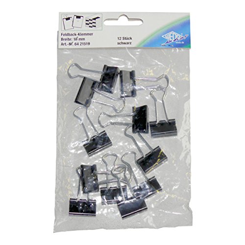 Wedo 6421441 Foldback-klämmor, 12 stycken, lackerad metall avtagbara byglar, stark fjäder, 41 mm, svart/silver