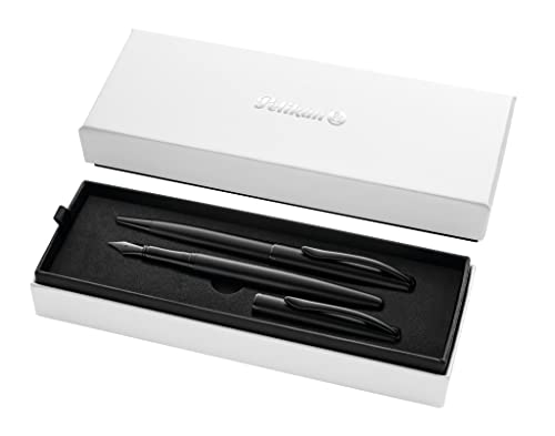 Pelikan Presentset Jazz Noble med reservoarpenna och kulspetspenna, kol (svart), elegant patronfyllmedel (fjäder M) och kulspetspenna av metall, i presentförpackning 821896