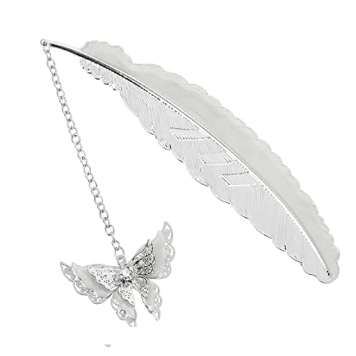 TIESOME Bokmärke med fjäder i metall, Glödande metallbokmärke med 3D fjärilshänge Unikt bokmärke med fjäril som lyser i mörkret för bokälskare (Silver)
