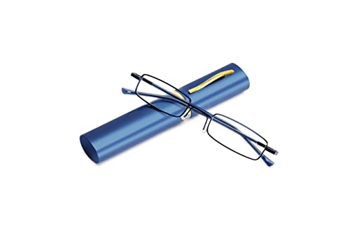 KoKoBin Läsglasögon av metall, flexibla glasögon, synhjälp, med fjäder och gångjärn, läshjälp, unisex, inklusive glasögonfodral med klämma (blå, +2,5)