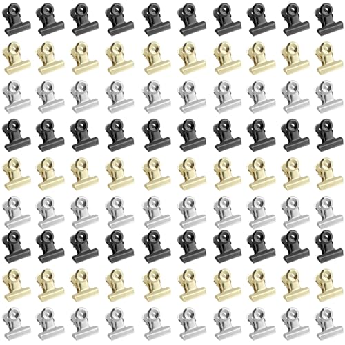 90 stycken små bulldog gem minimetallklämmor med stark fjäder, 22 mm brevklämma metall, gångjärnspappersklämmor, multifunktionella klämmor för foton, kontor och kök, 3 färger