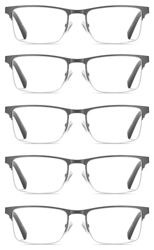 EYECEDAR 5-pack blåljusblockerande läsglasögon män halvram rektangulär stil rostfritt stål metall fjäder gångjärn läsare 2,50