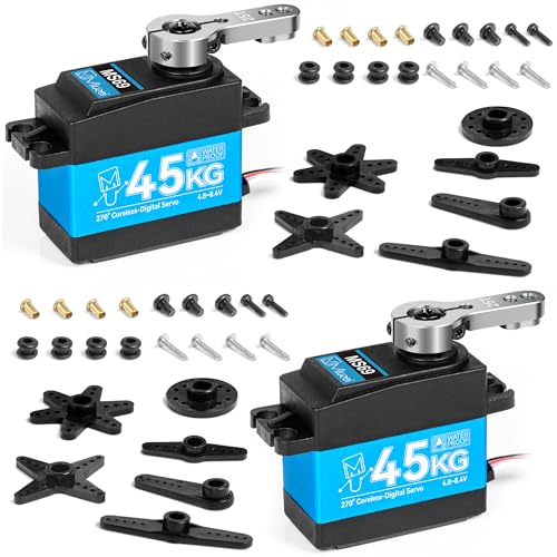 Miuzei RC Servomotor 45 kg 270 ° digital servomotor digital högt vridmoment metall växel vattentät för R/C modell DIY 1/10 1/8 bil robotkontroll vinkel 270° 4,8 V-8,4 V med 0,5 m kabel 25T Horn, 2 st