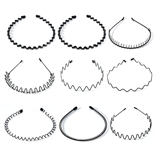 9 st metallpannband, multistil elastiska vågband, halkfritt sporthår Hoop band, metallband för män, metallband för kvinnor