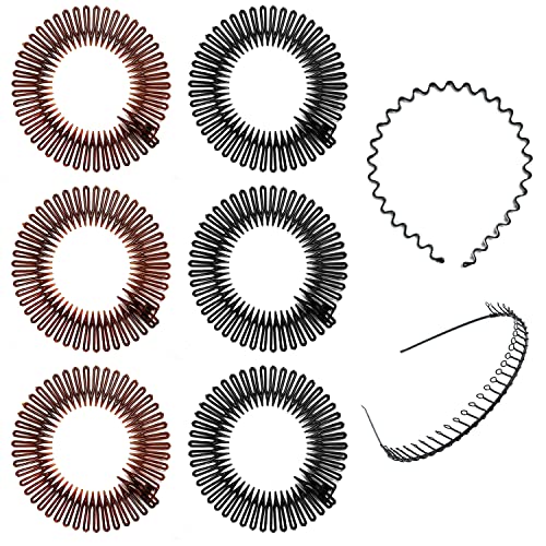 6 st elastiskt kam pannband med 2 metallband, rund plastsicksack, anti-brott, flexibel, sport för kvinnor, flickor