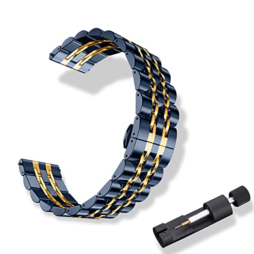 RoYiio Armband i rostfritt stål för stötbredd 20 mm, ersättningsarmband med snabbkoppling, vackert polerat, metallband för kvinnor och män – blått guld, 20mm