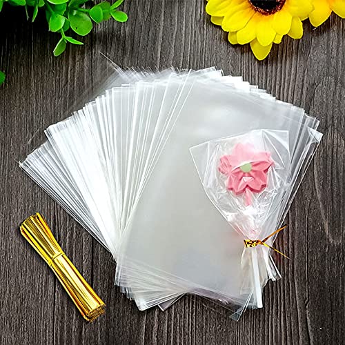 Zhenle Cellofanpåsar liten klar, 200 stycken 10 x 15 cm, polypropen, transparent, med metallband, engångsbruk, cellofan med OPP-beläggning, för godis, choklad, kex, presenter