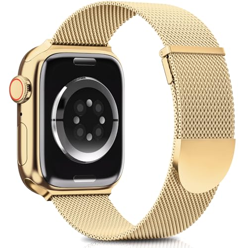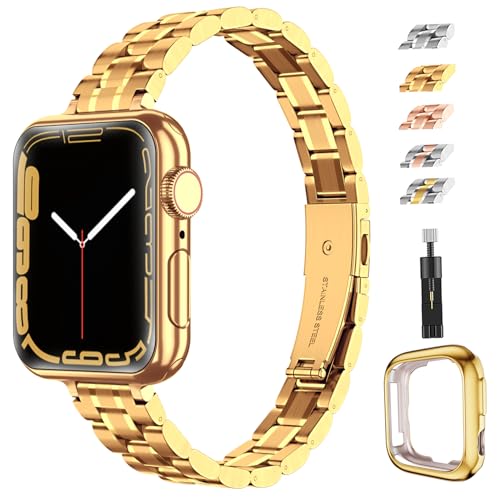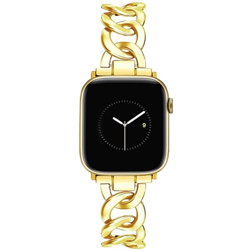 JR.DM Metallband, guld, kompatibelt med Apple Watch på 38/40/41/42/44/45/49 mm, enfärgat, elegant, för män och kvinnor, metallarmband, ersättning för iWatch Serie 9/8/7/6/5/4/3/2/1/SE/Ultra
