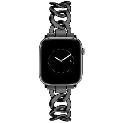 JR.DM Metallband, svart, kompatibelt med Apple Watch på 38/40/41/42/44/45/49 mm, enfärgat, elegant, för män och kvinnor, metallarmband, ersättning för iWatch Serie 9/8/7/6/5/4/3/2/1/SE/Ultra