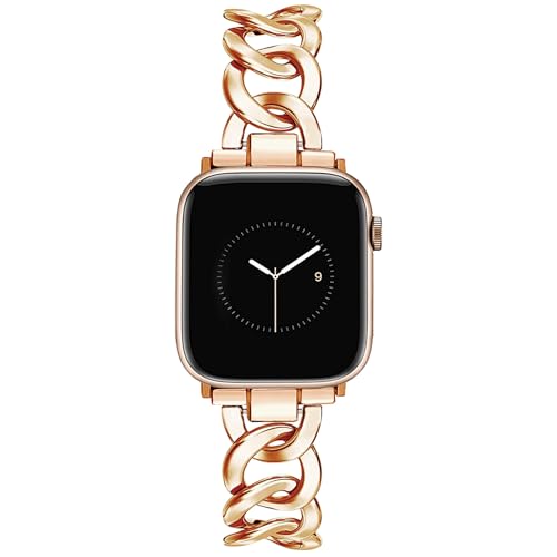 MioHHR Ultratunt metallband kompatibelt med Apple Watch 38/40/41 mm, rostfritt stål kedjeband för kvinnor med iWatch Series 9/8/7/6/5/4/3/2/1/SE, roséguld