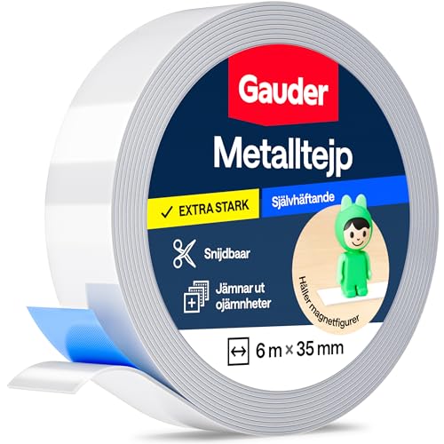 GAUDER Självhäftande Metalltejp I Idealisk för Tonies®-figurer och hyllor I Metallremsa I Metallband (6 m)