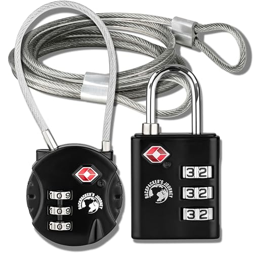Backpacker's Journey TSA set med bagagelås. Perfekt för backpacking, ryggsäck, resväskor och väskor av alla . Med metallband för olika användningsområden