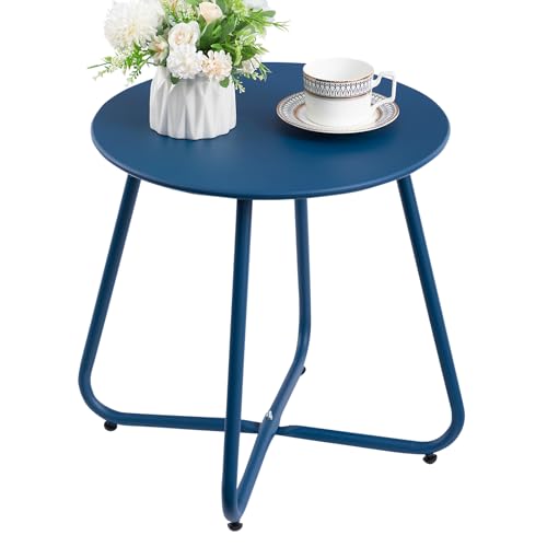 HollyHOME Runt sidobord utomhus sidobord uteplats och trädgård balkongbord litet metallbord, marinblå