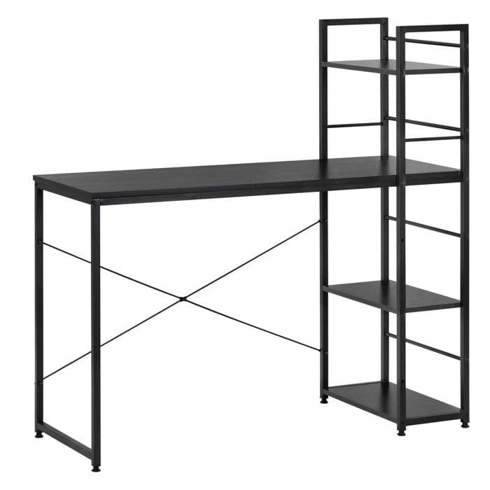 Metallbord med hyllor, industriell, datorbord 120x48x122 cm, svart