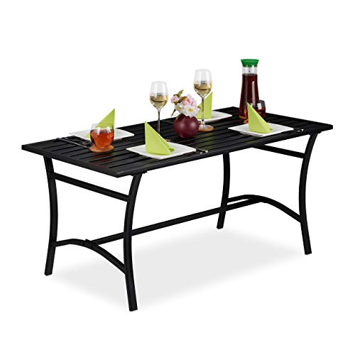 Relaxdays Trädgårdsbord rektangulär, trädgård, terrass och balkong, robust och stabilt, metallbord, HBT: 55,5 x 120 x 60 cm, svart, legerat stål