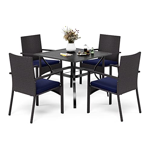 PHIVILLA Uteplats möbler metallbord och rottingstolar med kudde utomhus balkong trädgårdsbord och stolar trädgårdsmöbler set alla väder (4+1)