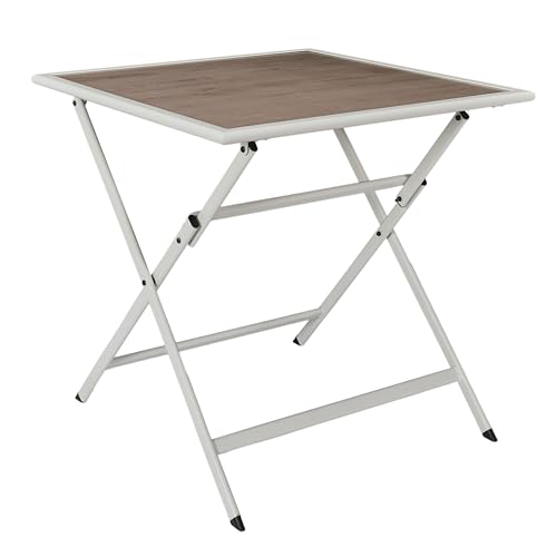 HOME DECO FACTORY, HDO0222, vit metallbord i träeffekt, Barcelona-modell, trädgårdsmöbelbord, möbler, trädgårdsmöbler, utebord, 70 x 71 x 70 cm, beige