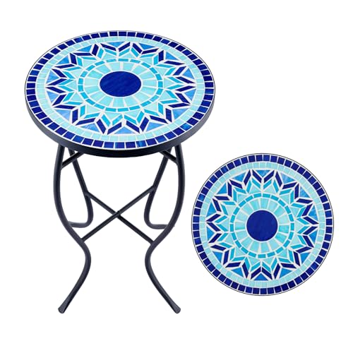 VONLUCE Mosaik, sidobord, runt retro, mosaikbord, metallbord, kaffebord, 35,5 x 54,5 cm, blompall, blomställ, växtstativ, blomhylla med mosaikplatta, 14 tum, balkongbord (blå)