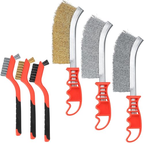 Trådborstset, 6 stycken metallgallrborstar, stålborste mässingsborste grillset, mässing stålborste, metallborste metallborste med handtag, handtrådborste, för verkstad, trä, borr