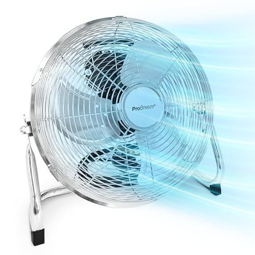 Pro Breeze Golvfläkt 30,5 cm förkromad, hushåll, kontor och gym golvfläkt 3 hastigheter och justerbart svänghuvud 110 grader, tung metallfläkt cirkulation