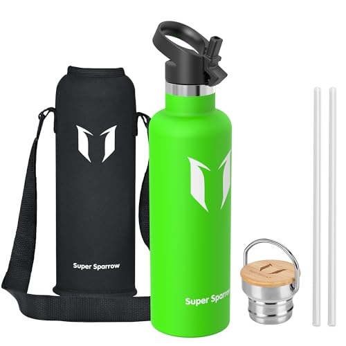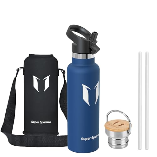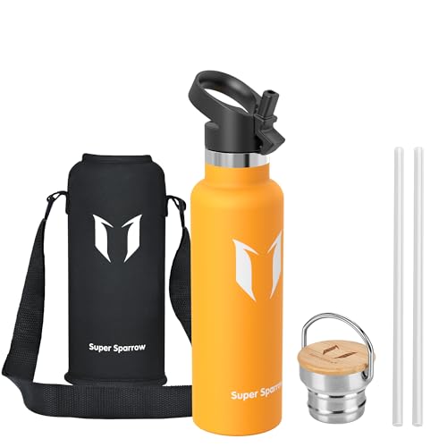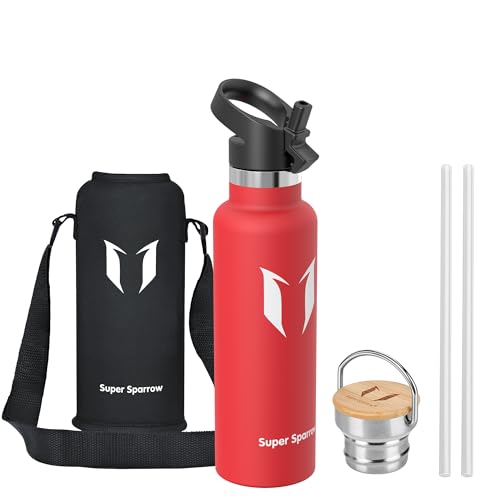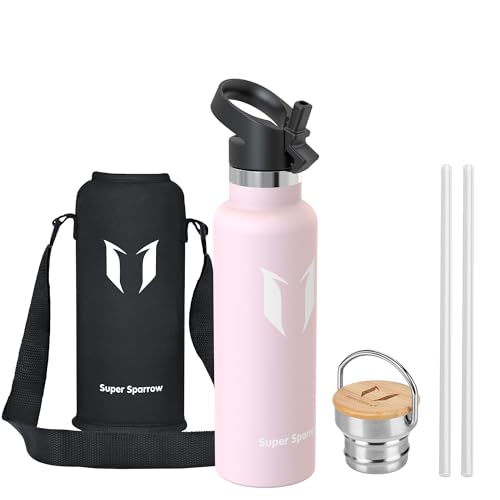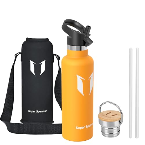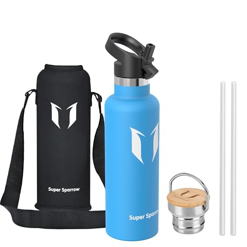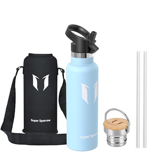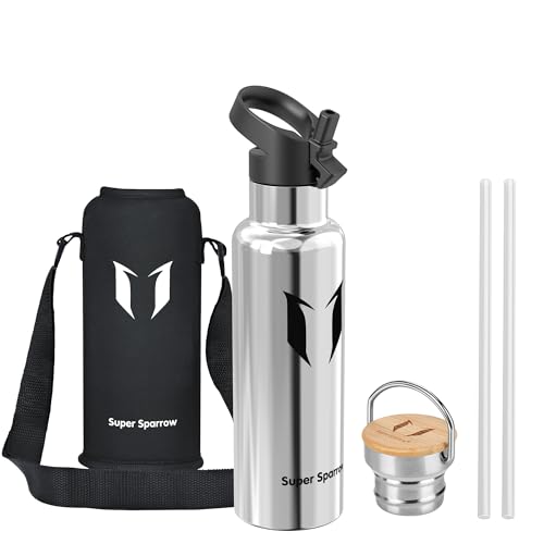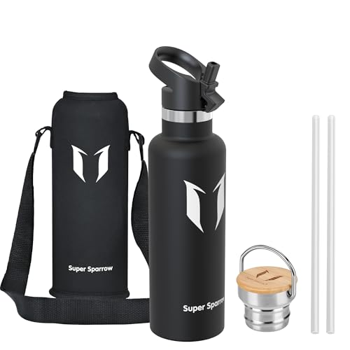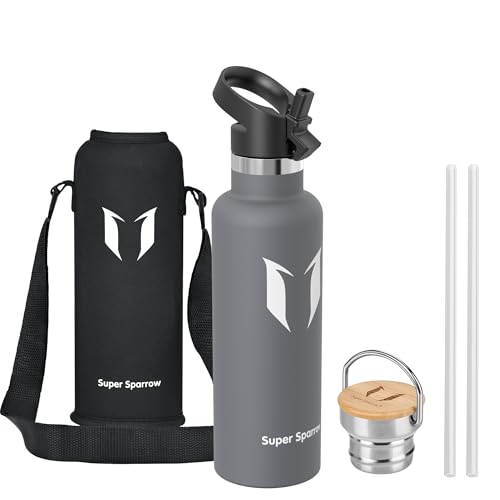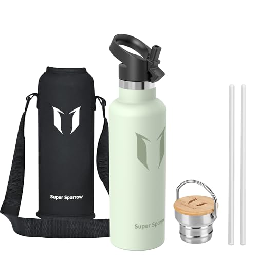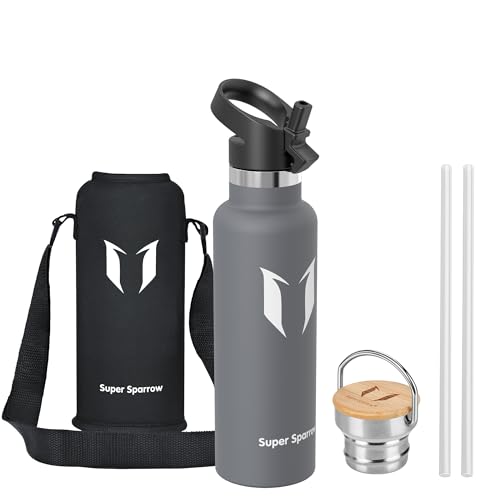 Super Sparrow Vattenflaska - 620ml - Rostfritt Stål Metallflaska - Termos Standard Mun - Giftfri BPA-Fri - Perfekt Som Sportflaska - 2 Lock