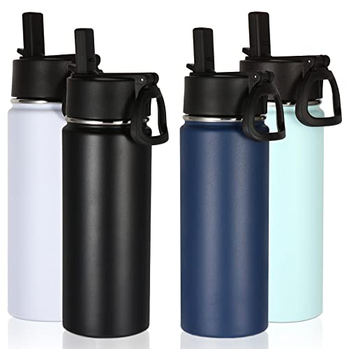 Volhoply 525 ml isolerad vattenflaska bulk 4-pack, barn rostfritt stål vattenflaskor med sugrörslock, bred mun återanvändbar metallflaska, dubbelvägg vakuum sportflaska håller varm och kall