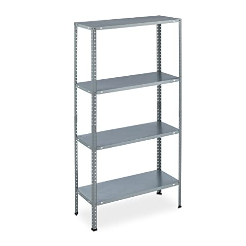 Relaxdays Galvaniserad metallhylla, HBT: 145 x 75,5 x 30 cm, 4 golv, upp till 160 kg, för skruvning, stål, lagerhylla, källare, silver