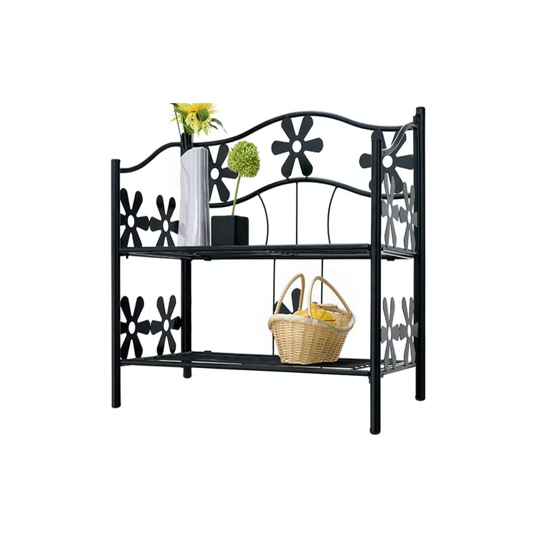 Metallhylla svart 60x30x50cm – 2 nivåer, inomhus/utomhus