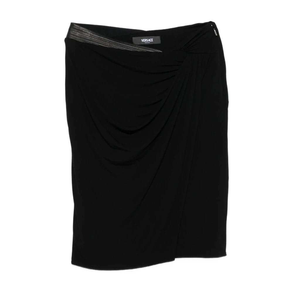 Versace, Kjolar , Dam, S, Svart Draperad Metallic Kjol