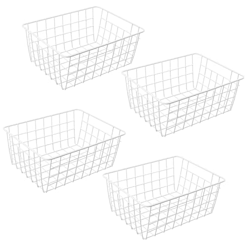 MUNGHOK 4 stycken trådkorg metallkorg vit, 28 x 22 x 12 cm järnkorg vit, förvaring metallkorg hylla, tråd förvaringskorgar för kontor, kök, badrum, skåp
