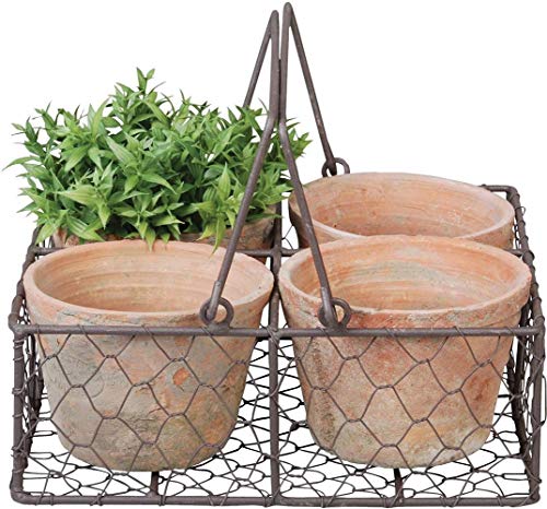 Fallen Fruits Set med 4 runda blomkrukor med metallkorg i antik stil