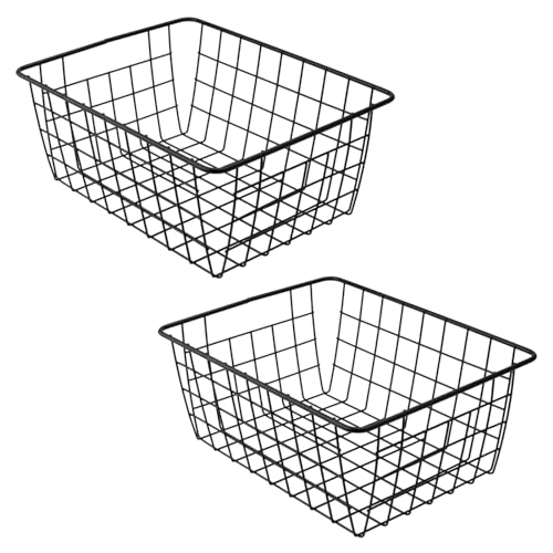 ZOZOENHOU 2 stycken förvaringskorgar av tråd 28 x 22 x 12 cm, metallkorg rektangulär, badrumskorg metall, öppen tråddesign, vägg – järnkorg hängande korg, för kontor, kök, badrum, svart