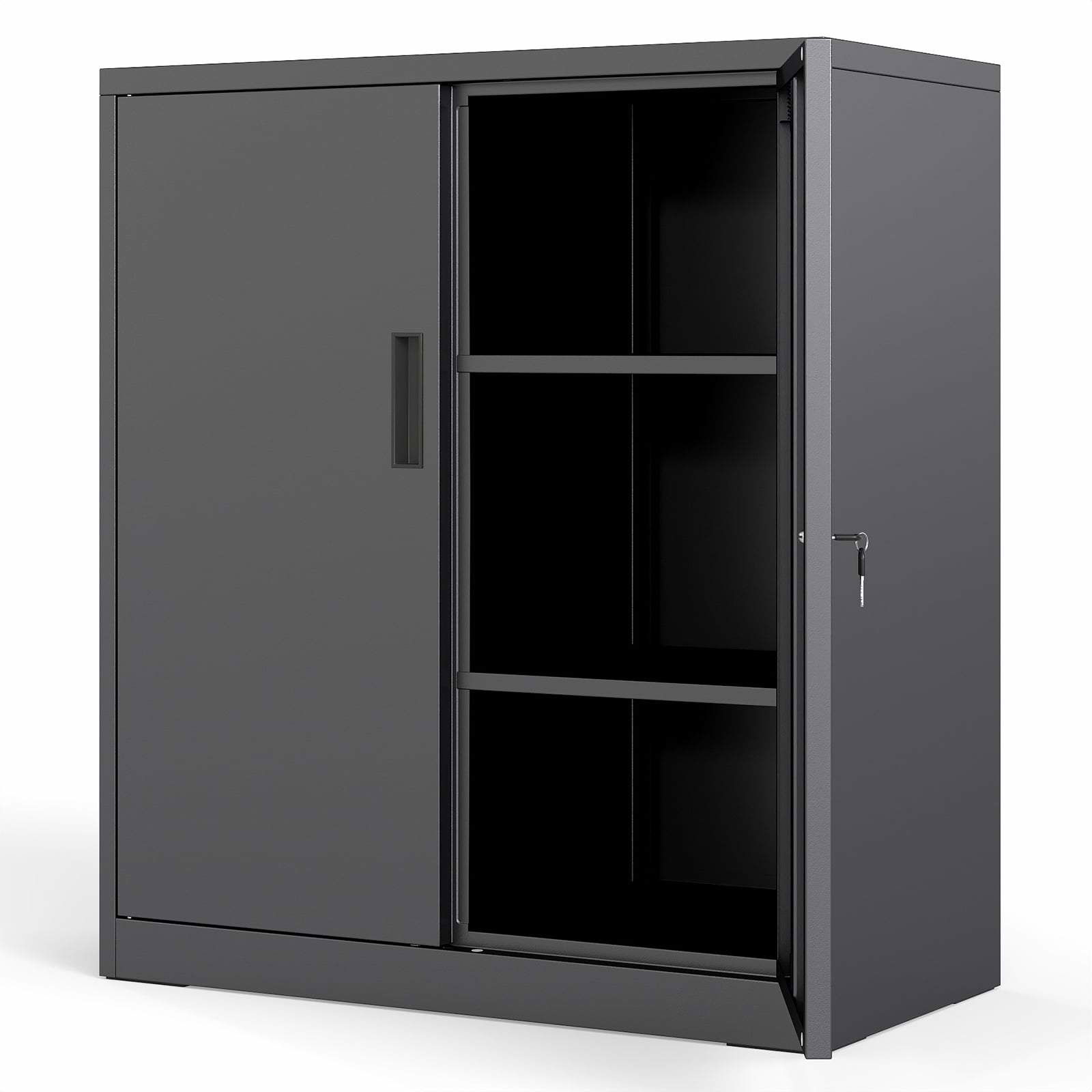 YITAHOME Låsbart arkivskåp, metallskåp med 2 justerbara hyllor, kontorsskåp, stålskåp med ventilationshål för arbetsrum, kontor, garage, skola, svart, 80 x 40 x 90 cm