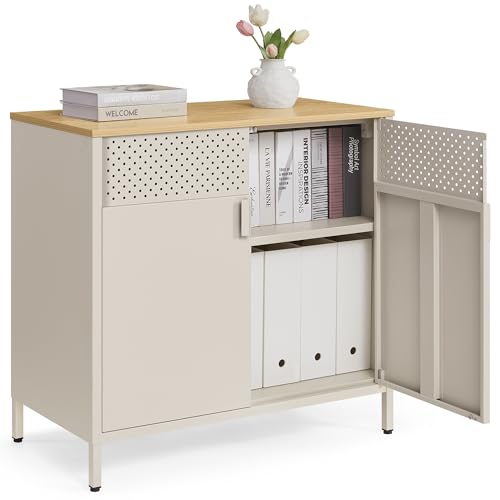 SONGMICS Förvaringsskåp, metallskåp, med dubbeldörr, magnetisk stängning, justerbar hylla, stålram, 40 x 80 x 76 cm, sandbeige-naturbeige LSC102L01