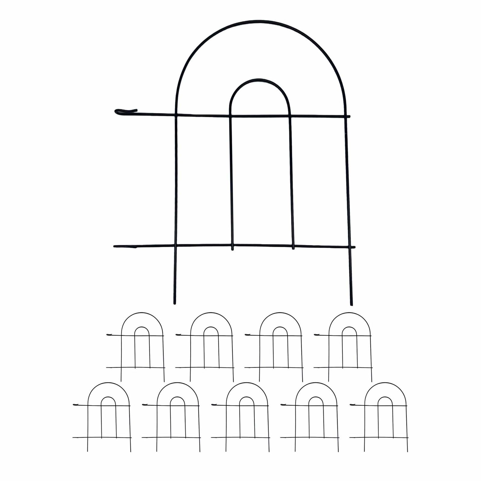 Metallstaket, klassisk bågdesign, set med 10 delar
