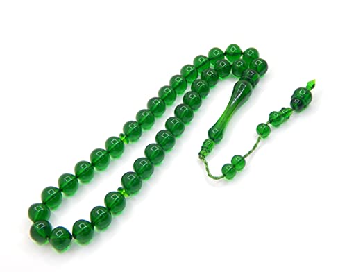 Tesbih Tasbih Tespih Misbaha Subha 33, 32 cm, muslimsk islamisk radband - ottomanska gudstjänsttillbehör Mevlana - gröna pärlor - 10 mm boll, 10 mm perlen - 32 cm Tesbih, akryl, 10mm perlen - 32cm