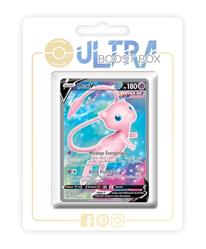 Mew V 251/264 Alternative Shiny Pokémon Gallery Fusion Strike - Myboost X Épée et Bouclier 8 - Poing de Fusion Box med 10 franska Pokémon-kort