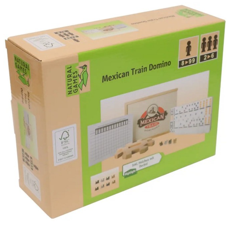 Weible Spiele 04395 – Domino Mexican Train i trälåda, 12 st