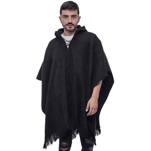 Gamboa alpacka ullponcho män panchos mexikansk med huva vuxen cowboy och western hippie poncho för män, Svart, one size