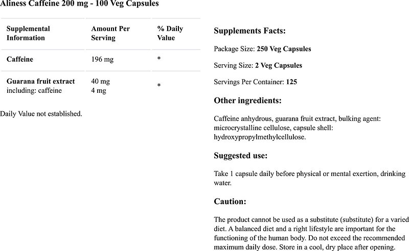 Aliness Koffein 200 mg med guarana 100 Kapslar